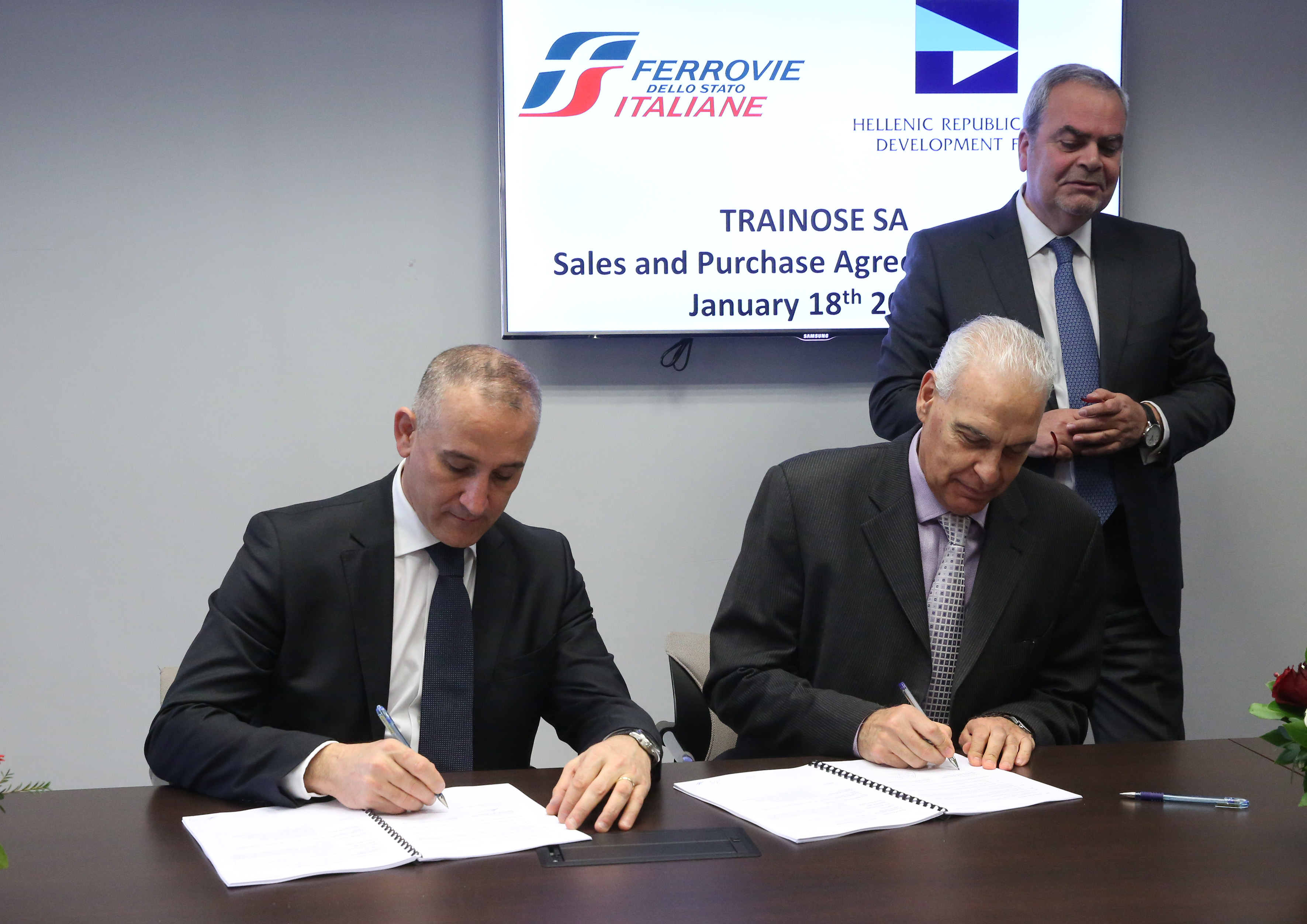 Σήμερα το πρωί στην Αθήνα υπεγράφη η εξαγορά της ελληνικής εταιρείας σιδηροδρομικών μεταφορών TΡΑΙΝΟΣΕ από τον Οργανισμό Ιταλικών Κρατικών Σιδηροδρόμων FS.